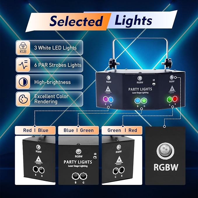 2st Partyljus till fest,bröllop mm. Discolampa/Laserljus2 st Discoljus partyljus med fjärrkontroll, musikstyrd discolampa med stroboskop, LED-ljus, DJ-projektor, festljus för KTV, scen, pub, bröllop, familjeåterförening, klubb, helgdagar..