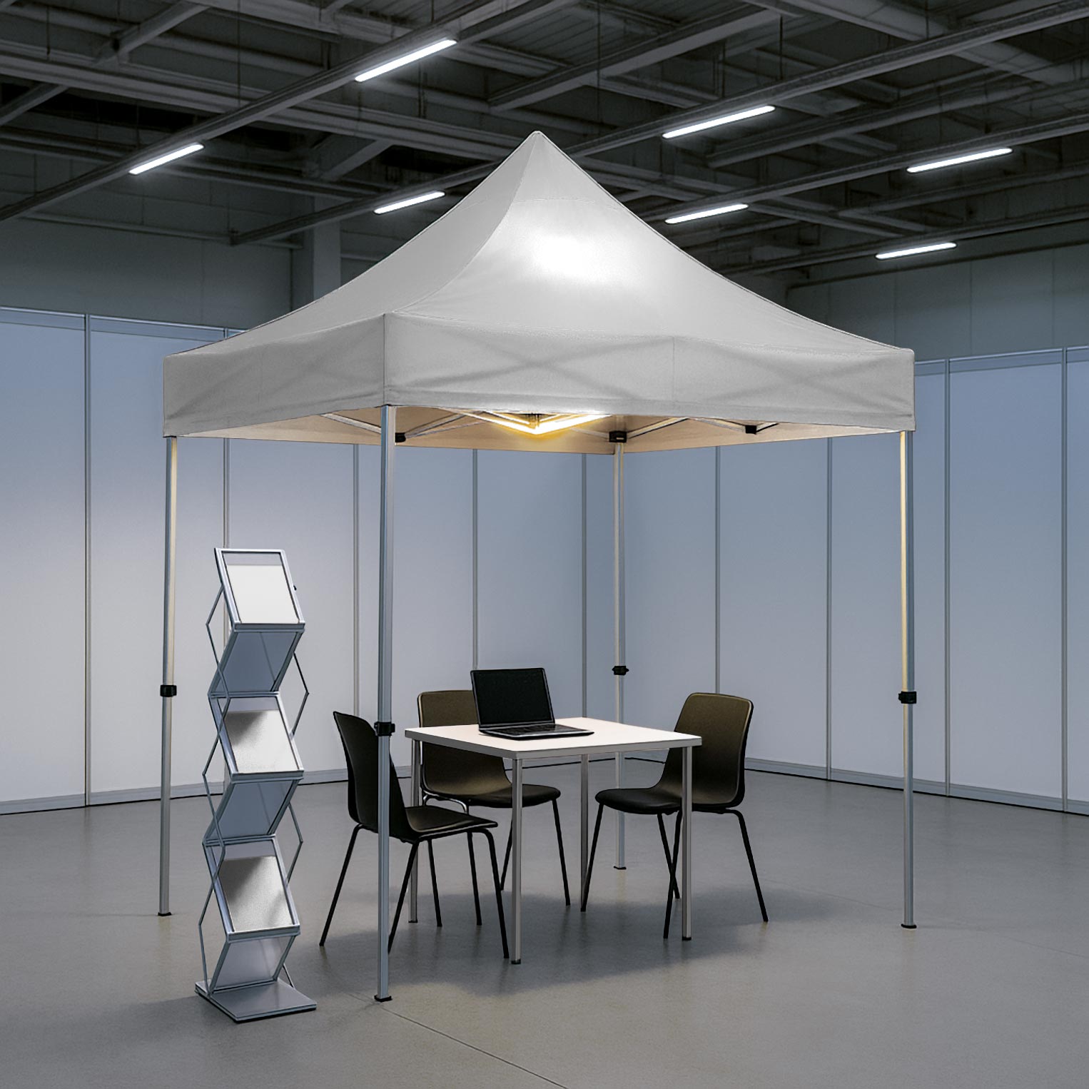 Hyr ett smidigt och stabilt 2×2 meter pop up-tält – superenkelt att sätta upp på bara några minuter!